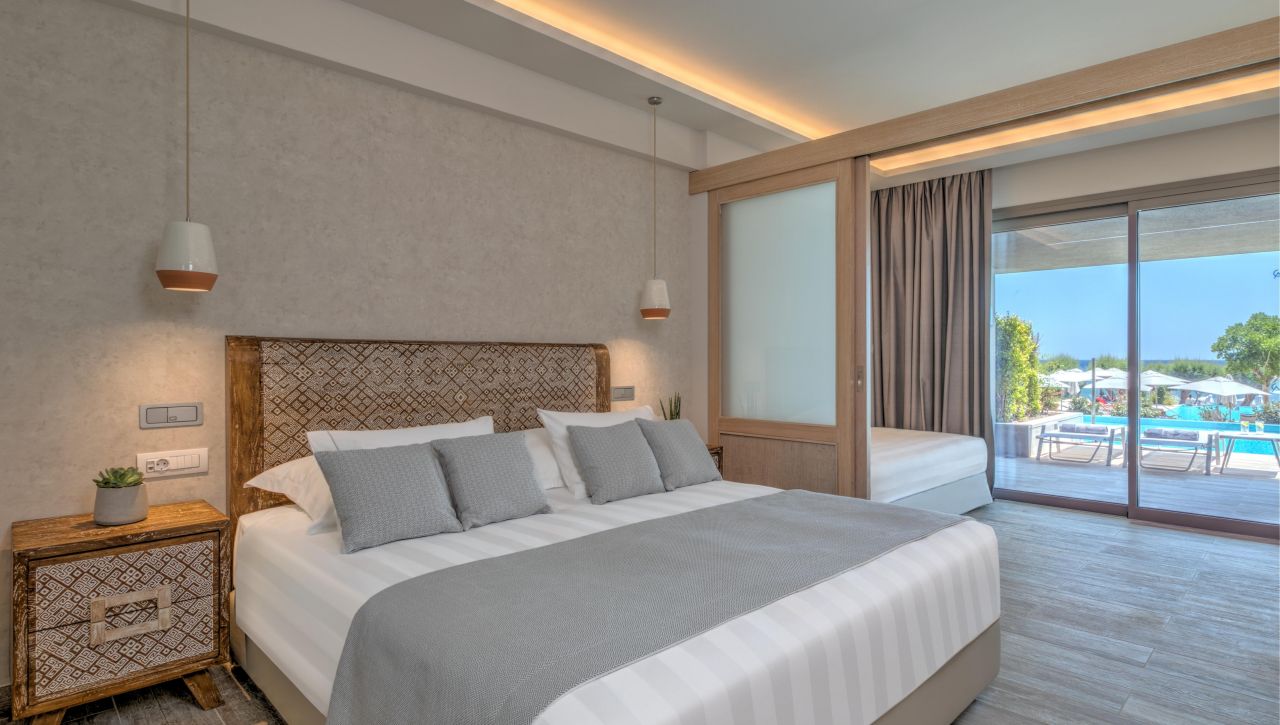 Amada Colossos Resort nabízí širokou škálu pokojů, rodinných pokojů i suit, které splňují požadavky moderního cestování. Světlé interiéry, kvalitní vybavení a balkon nebo terasa zajišťují příjemné zázemí po celý pobyt. Vybrané pokoje nabízejí výhled na moře, což umocňuje celkový zážitek z dovolené.