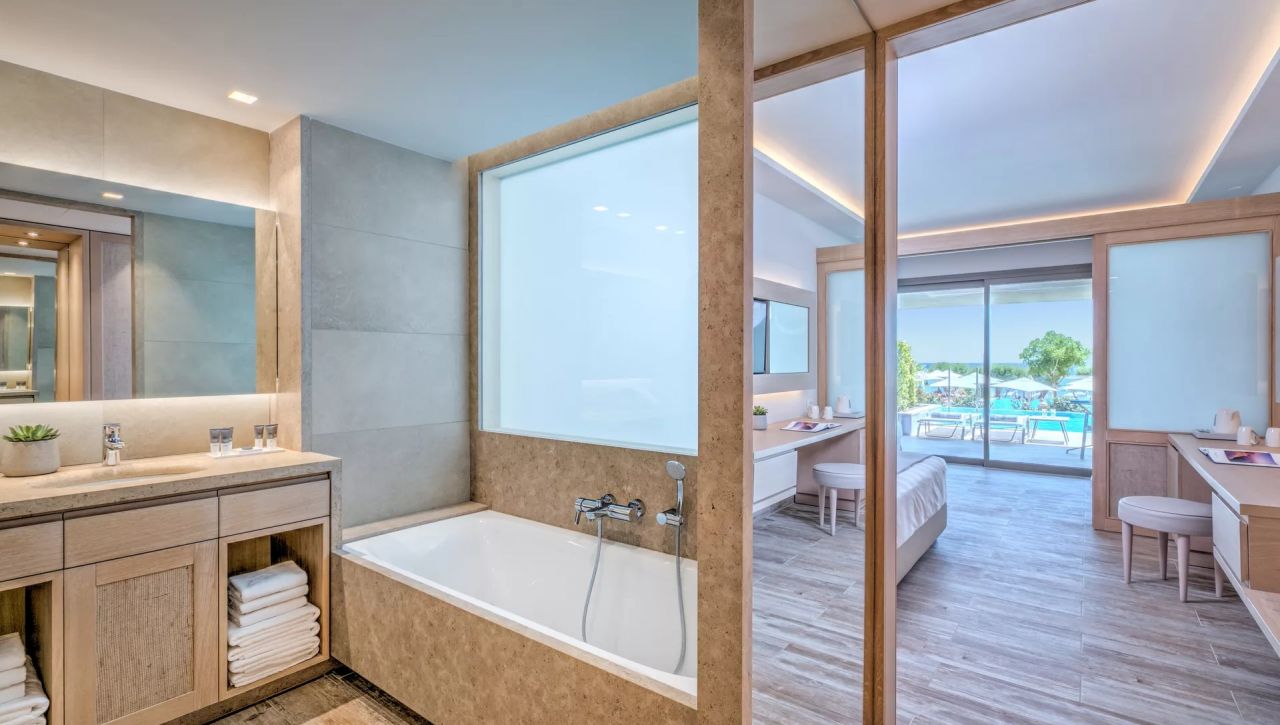 Resort zaujme svým současným architektonickým stylem, který kombinuje čisté linie, světlé barvy a otevřené prostory. Interiéry působí elegantně a vzdušně, přičemž důraz je kladen na pohodlí a funkčnost. Celý areál je navržen tak, aby poskytoval dostatek prostoru pro odpočinek i aktivní trávení času, a zároveň nabízel příjemnou a uvolněnou atmosféru.